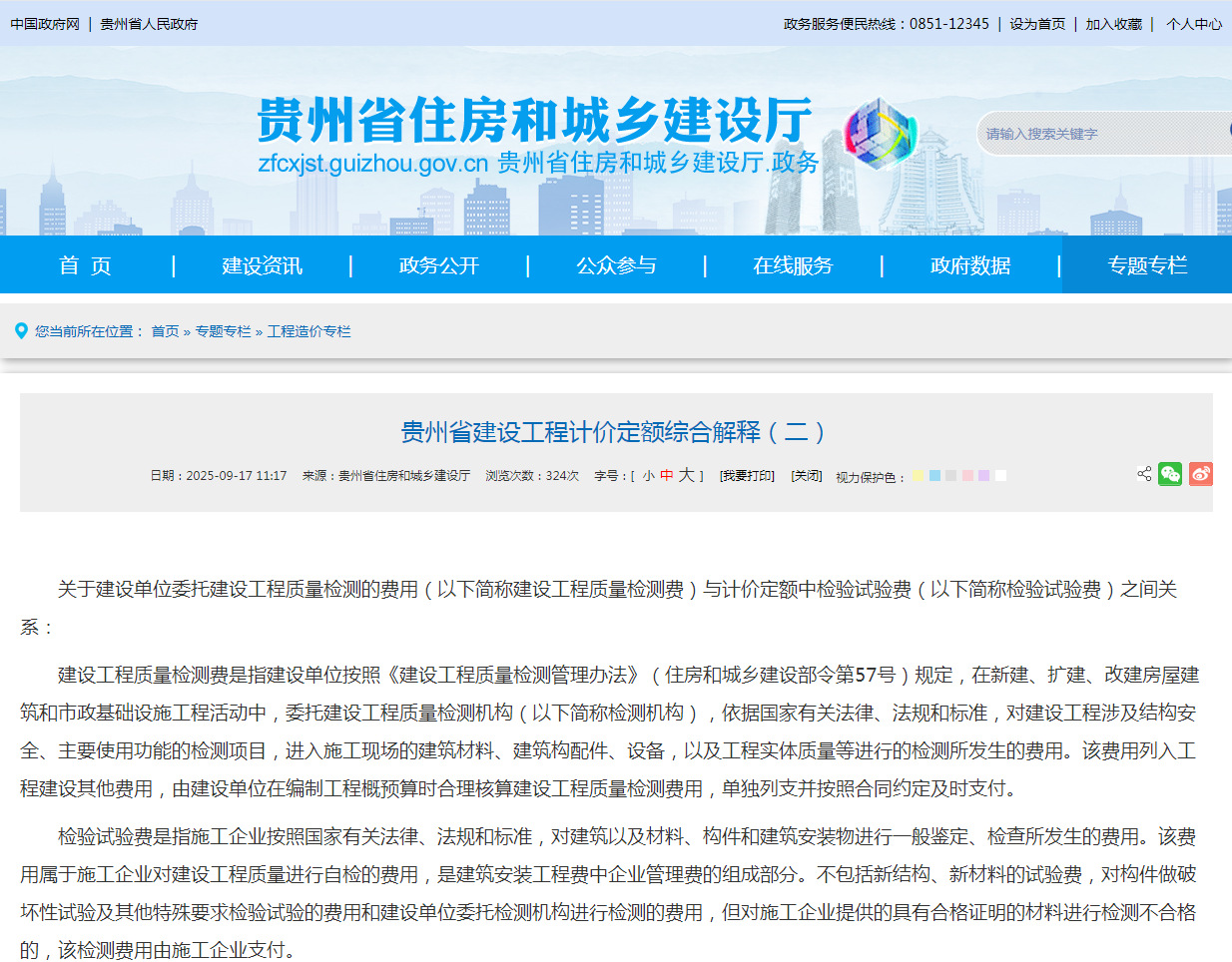 【转发】贵州省住房和城乡建设厅关于贵州省建设工程计价定额综合解释(二)
