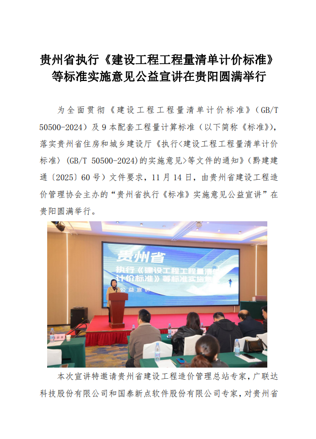 贵州省执行《建设工程工程量清单计价标准》等标准实施意见公益宣讲在贵阳圆满举行
