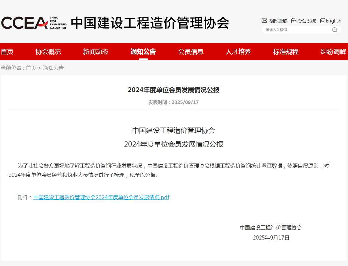 【转发】中国建设工程造价管理协会2024年度单位会员发展情况公报