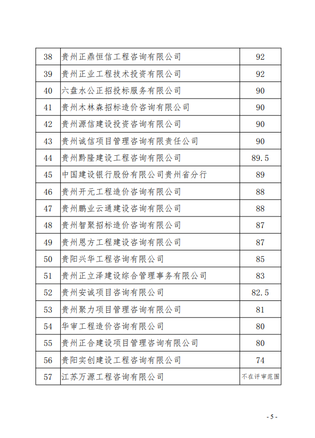 关于贵州省2024年度工程造价咨询成果文件质量评审结果的公示